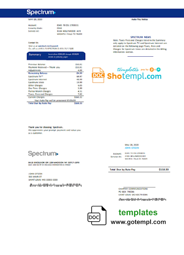 Usa Spectrum Utility Bill Template In Word Format Doc Bill Template Document Templates Utility Bill